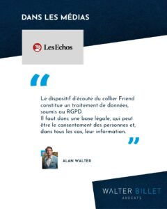 Ensuite, « ce type de dispositif d’écoute constitue un traitement des données, soumis au RGPD. Il faut donc une base légale, qui peut être le consentement des personnes et dans tous les cas leur information. Je vois mal comment faire peser cette obligation sur l’utilisateur du collier : doit-il se promener avec une notice d’information ? », ironise le spécialiste.